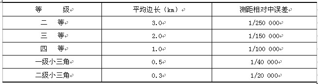 一、三边测量的技术要求应符合下表的规定。