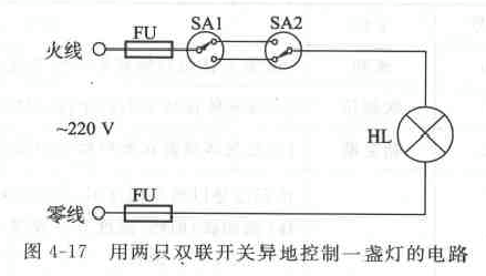 从图中可以看出,这个电灯可以在两处控制一盏灯例如.楼上、楼下都可以开或关一盏灯控制特别方便.满足实际需要。转换其中的一个开关,肯定一次是接通电灯的电源.一次是断开电源。但必须使用三线开关,才能达到目的。