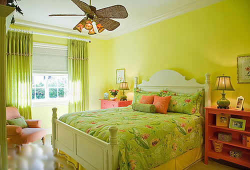纯净的绿色既有自然的清爽,又有柔和的美感,拼撞上相反色度的粉红,显得格外妩媚,整个卧室跳脱活泼,不失可爱,营造出极为年轻舒适的居室感觉。(图)