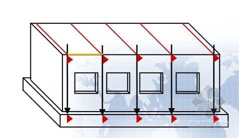 将较重的锤球悬吊在楼板或柱顶边缘,当锤球尖对准基础墙面上的轴线标志时,线在楼板或柱顶边缘的位置即为楼层轴线端点位置,并画出标志线各轴线的端点投测完后,用钢尺检核各轴线的间距,符合要求后,继续施工,并把轴线逐层自下向上传递。