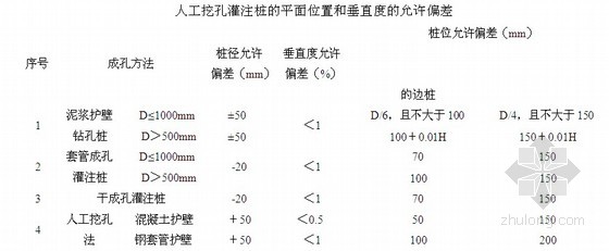 人工挖孔灌注桩的平面位置和垂直度的允许偏差范围