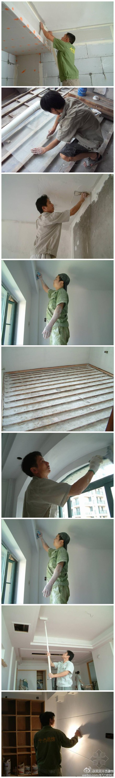 7、复补腻子后再磨平;8、涂刷第二遍涂料;9、磨光交活。