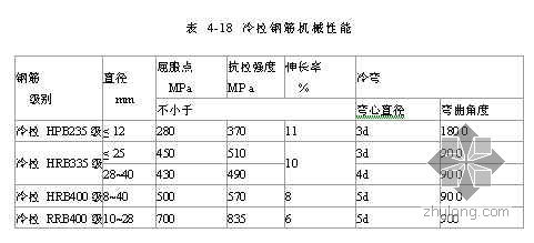 (3)从每批冷拉钢筋中抽取两根钢筋,每根取两个试样分别进行拉力和冷弯试验,如有一项试验结果不符合表4-18(教材第124页表4-9)的规定时,应另取两倍数量的试样,重做各项试验,如仍有一个试样不合格,则该批冷拉钢筋为不合格。