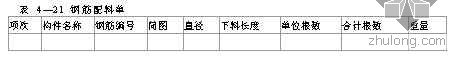 钢筋配料是根据构件的配筋图计算构件各钢筋的直线下料长度、根数及重量,然后编制钢筋配料单,作为钢筋备料加工的依据。钢筋配料单的形式如下表421: