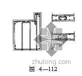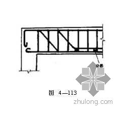 图4112为高截面上部钢筋使用支架,以及对两层钢筋网使用撑脚示意图。撑脚和支架都可用钢筋弯折制成。支架的设置根据混凝土构件的型式灵活确定,宽度不能太大,以防止被压弯;如果构件本身的宽度就很大,可使用几个支架并排连成一片;几排支架之间要用斜撑联系,以免造成失稳。