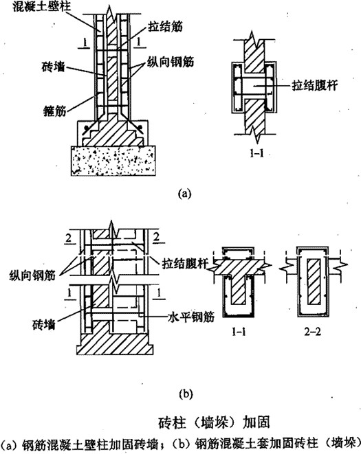 钢筋混凝土壁柱(套)加固砖墙有哪些构造要求?