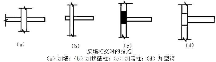 3)当不能设置扶壁柱时,应在墙与梁相交处设置暗柱,并宜按计算确定配筋;