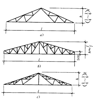 钢屋架有有三角形屋架、梯形屋架两种型式。
