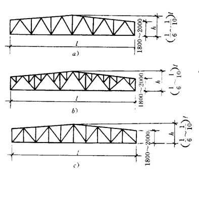 用于屋面坡度较大的屋盖结构中。内力变化较大,弦杆内力在支座处最大,在跨中最小,材料强度不能充分发挥作用。一般用于中小跨度的轻屋盖结构。