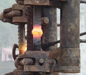 6)加热过程中,如果在压焊面间隙完全闭合之前发生灭火中断现象,应将钢筋断面重新打磨、安装,然后点燃火焰进行焊接。如果发生在间隙完全闭合之后,则可再次加热加压完成焊接操作。