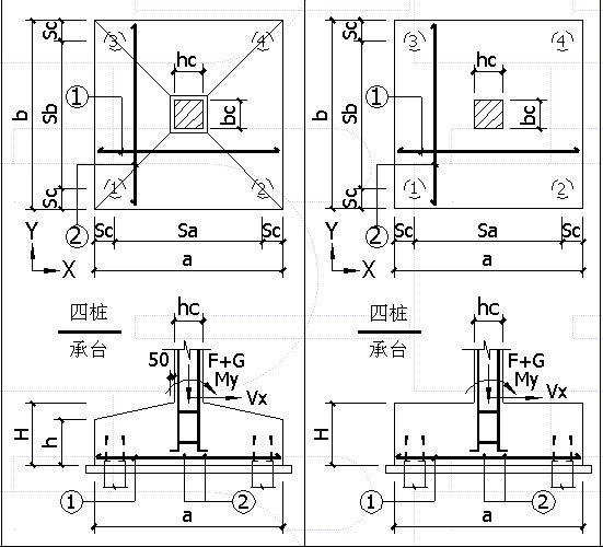 结构施工图,四桩承台