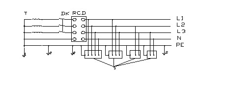 N工作零线;PE保护零线;Dk总电源隔离开关;