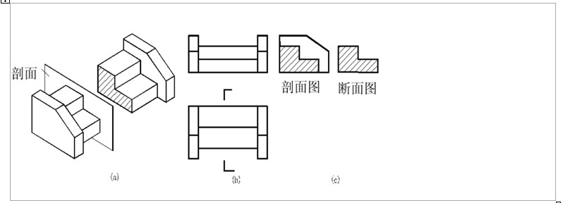 (2)剖面图与断面图的区别:断面图只画形体被剖开后断面的投影,而剖面图要画出形体被剖开后整个余下部分的投影,如图下图。