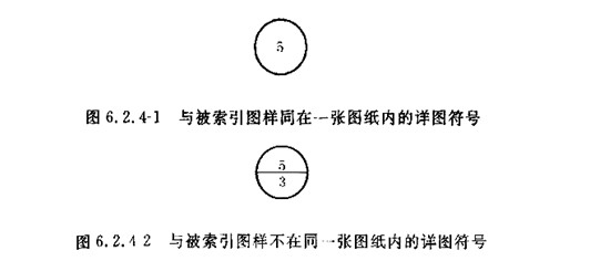 详图符号是详图的标志,常作为图名注在详图的下方。它以粗实线圆和标注组成,圆的直径为14mm。(详图与被索引的图样在同一张图纸上,应在详图符号内用阿拉伯数字注明详图编号。详图与被索引的图样不在同一张图纸上,应用细实线在详图符号内画一水平直线,在上半圆中注明被索引的图纸的编号。)
