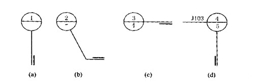 (1)详图索引符号(索引符号):图样中的某一部位,如需另见详图,应用索引符④ 索引符号如用于索引剖视详图,则在被剖切的部位绘制剖切位置线(粗实线),引出线所在的一侧为投射方向。