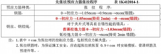 4.张拉程序应符合设计要求,设计未规定时,其张拉程序应符合表1K412014-1的规定。
