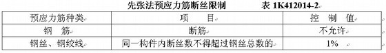 5.张拉过程中,预应力筋的断丝、断筋数量不得超过表1K412014-2的规定。