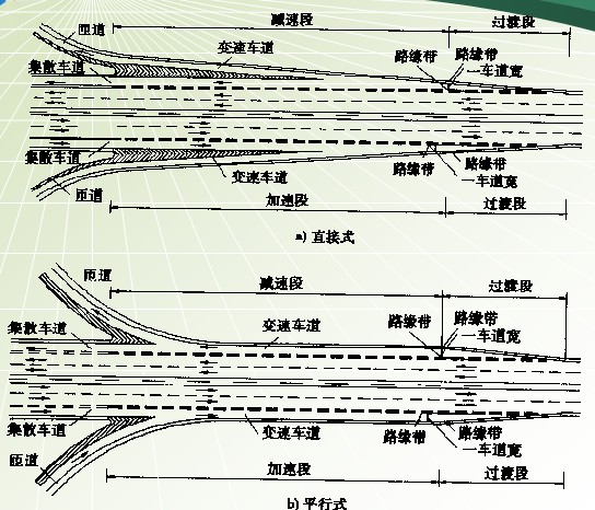 三、变速车道:与辅路和匝道相接,设计宜为单车道。