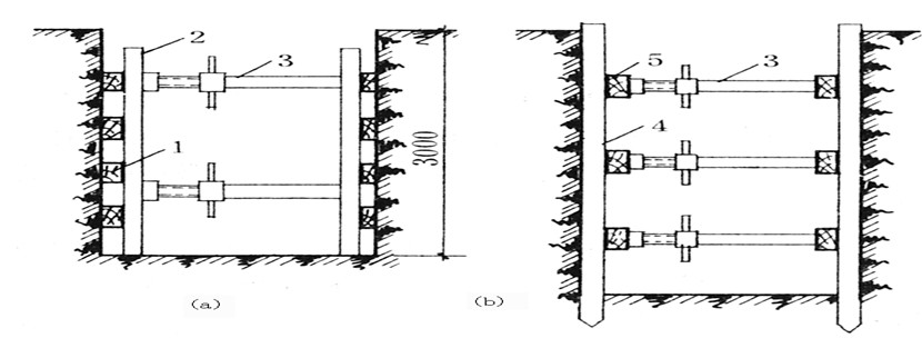 开挖基坑(槽)时,采用放坡是比较经济的,但是,如果地质条件及周围环境不允许,如在建筑稠密地区施工,或有地下水渗入基坑(槽)时,往往不可能按照要求的坡度放坡开挖,这时就需要进行基坑(槽)支护,以保证施工的顺利和安全,并减少对相邻建筑、管线的不利影响。