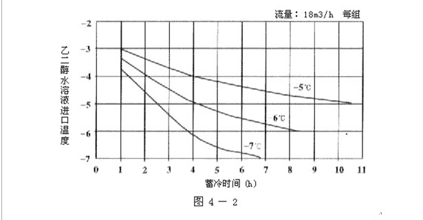 3.在满足蓄冰时间段的情况下,选择的蓄冰装置所需的蓄冷温度不易过低,如图4-2所示,某种产品其完成蓄冰的时间与