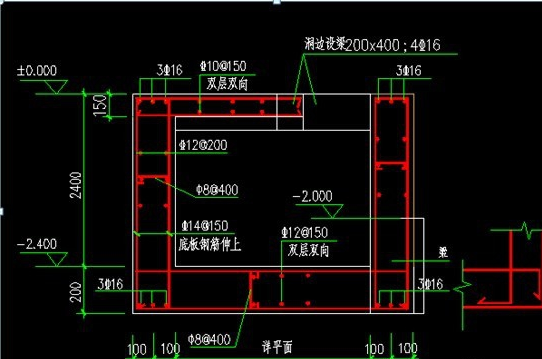 1像这种集水井的处理方法,我一般采用筏板基础+剪力墙来配筋