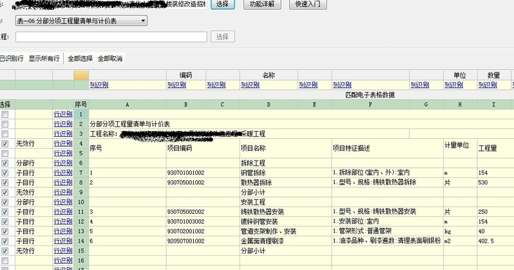 行识别和列识别很重要,招标文件中的补充项目,有时会无法识别,需要我们手动进行识别。