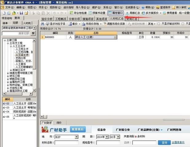 1打开或者新建工程,点击人材机汇总