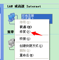 如果不能,请在网上邻居右键属性里,在本地连接上修复。多次修复直到能上网为止。实在不行就停用,再启用。