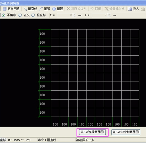 2在多边形编辑器界面中使用从CAD选择截面图功能;