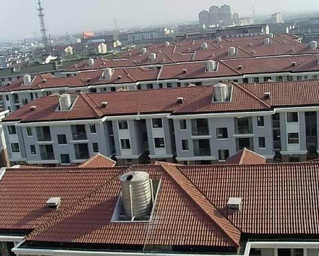 下面是我们一栋多层建筑一层需喷砂前要涂一层的黑色底子这个是我们所有屋顶的成品图,水箱和厨房出气孔