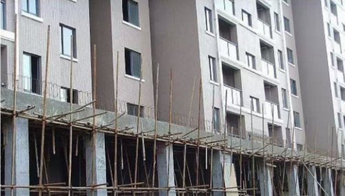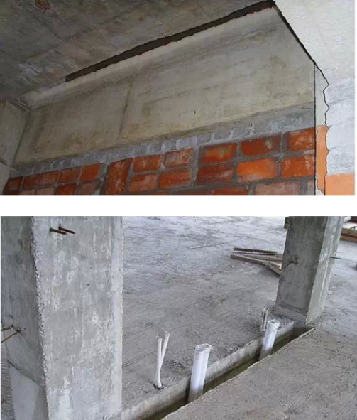 这个是进户门的地方,这个做法是跟太阳能管道井配套的,以后砖还要砌上的