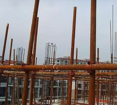 这个是各楼层柱子,大家看,边上的主筋就弯进去了12D,然后边上一般都空了2根钢筋没有弯进去,大家对照下面一张图片看看,下面是阁楼顶板浇好以后的,还有这里,就边上的柱子有弯申,中间柱子没有,因为中间柱子还要上去,跟一般楼层一样做法