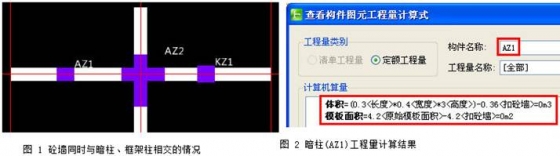 与墙同厚的暗柱体积与模板扣墙后均为0,而墙不扣减暗柱,这样暗柱的量就算在了剪力墙里了。