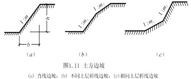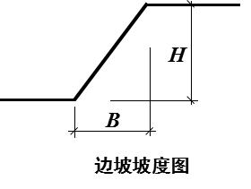 (1)土方边坡的坡度:以挖方深度(或填方深度) H与底宽B之比表示。