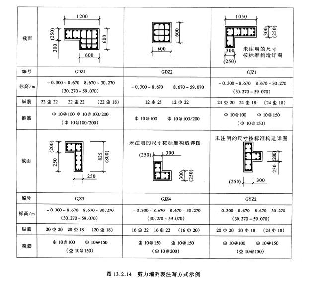 列表注写方式需要画出结构层楼面标高和结构层高表、暗梁或边框梁布置简图,与图附.2.14相同。其余见图附.2.15。