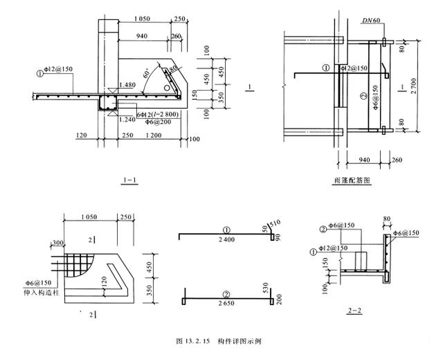 对其他构件,需要按制图规则,绘出其构件详图。如图所示。