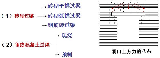 1、定义:当砖墙中开设门窗洞口时,为了支撑门窗洞口上方局部范围的砖墙重力,在门窗洞上沿设置横梁,称为门窗过梁。