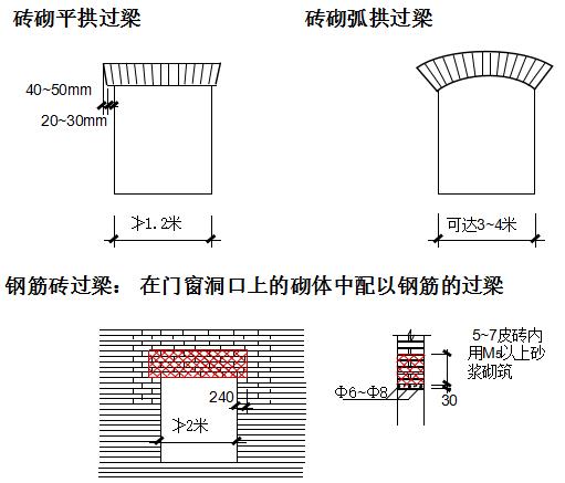 截面尺寸:高度为砖厚的倍数宽度一般与墙体厚度相同