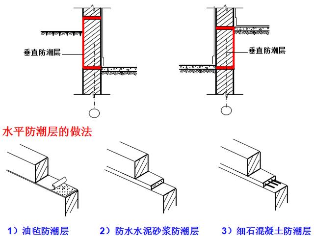 1)设防潮层的目的:防止土壤中的潮气和水分由于毛细管作用沿墙面上升,提高墙身的坚固性与耐久性,保持室内干燥卫生。