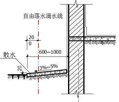 2、作用:防止雨水对墙基的侵蚀,将勒脚和基础处的雨水排开。