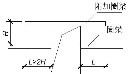 附加圈梁截面≮圈梁的截面、附加圈梁的搭接长度L2H且L1.0m
