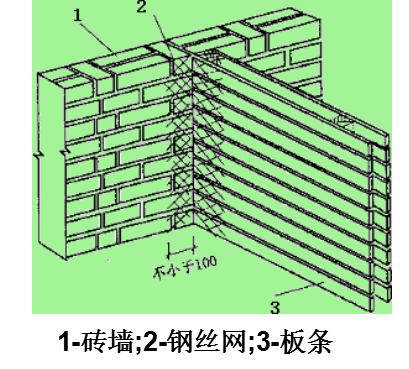 金属网或玻纤网:不同基层材料(如砖石与木、混凝土结构)相接处,搭缝宽度从缝边起每边不得小于100mm,以防抹灰层因基层温度变化而胀缩不一产生裂缝。