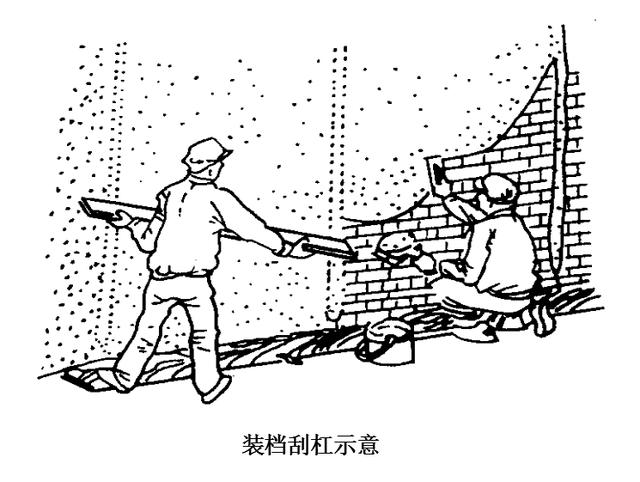 标筋用刮尺操作不致损坏时即可抹底层灰,厚度为标筋厚度的2/3。
