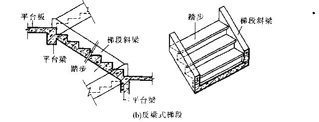 ②梯梁在踏步板之上,形成反梁,踏步包在里,称为暗步.也称作反粱式梯段
