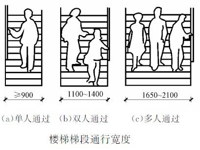 为了保证通行顺畅和搬运家具设备的方便,楼梯平台的宽度应不小于楼梯段的宽度。