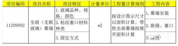 按照《玻璃幕墙工程技术规范》(JGJ102-2003),玻璃幕墙分为框支承玻璃幕墙即带骨架幕墙、全玻幕墙、点支承玻璃幕墙。2013工程量清单规范未设置点支承玻璃幕墙清单,使用中点支撑幕墙借用全玻(无框玻璃)幕墙清单。全玻(无框)玻璃幕墙清单设置详见下表。