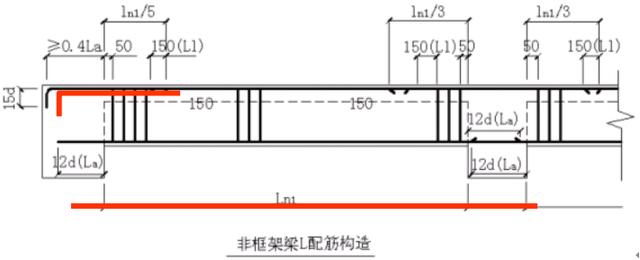 A.当非框架梁为直梁时: