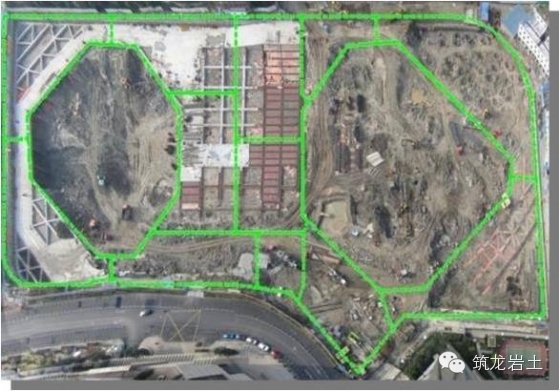 图为天津西站二期项目基坑,总面积为39000平方米,基坑周长达855米。