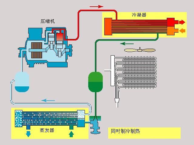 有的建筑物内,特别在过渡季节,部分区域需要供冷,部分区域需要供热,水源热泵可以同时供冷和供热,可以实现建筑内冷热量的转移和平衡,从而系统少用能源。