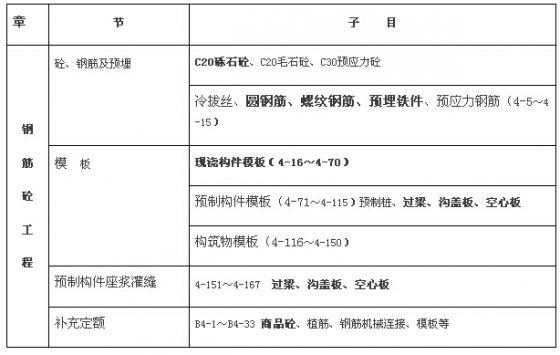 钢筋砼工程项目组成表